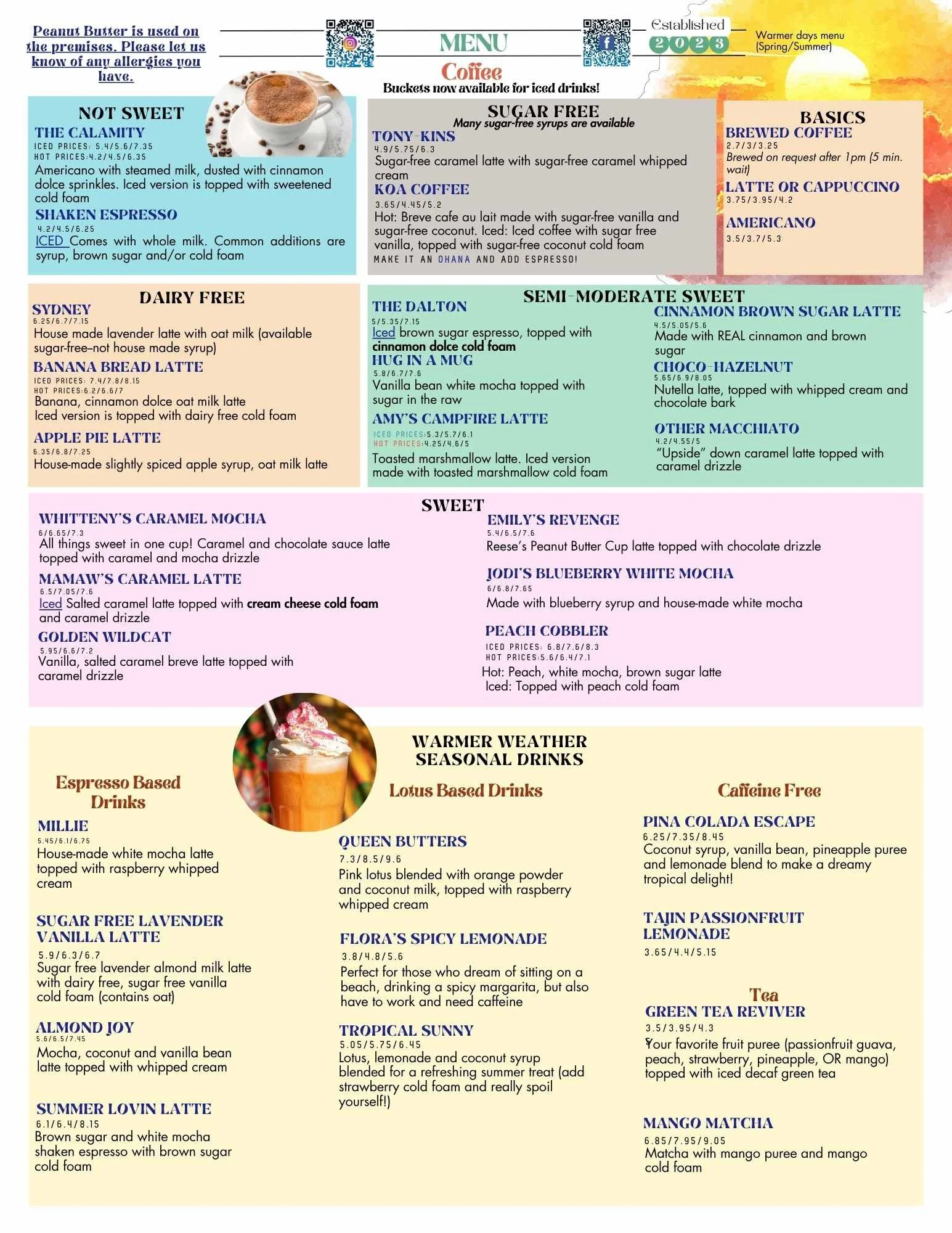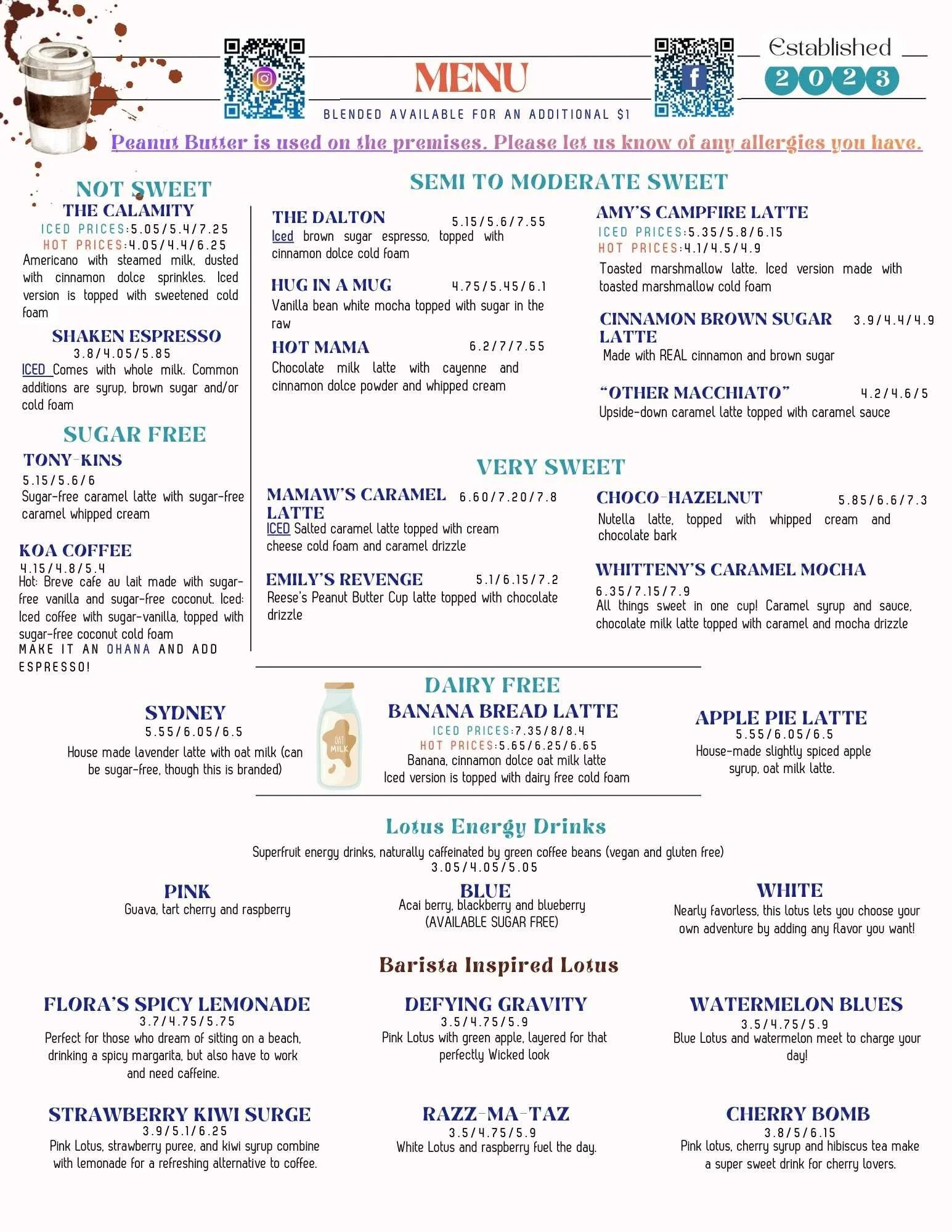 We LOVE coffee! We love it so much that we are constantly adding to the menu. We do our best to update our online menu but please check the in shop menu and/or ask us if the drink you want is available.